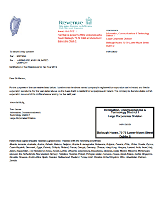 - O Certificado de Residência Fiscal da Booking é enviado pela Booking a cada titular no inicio de cada ano fiscal.