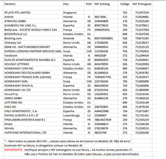 NIFs portugueses e estrangeiros das plataformas com que trabalhamos com mais frequência:
