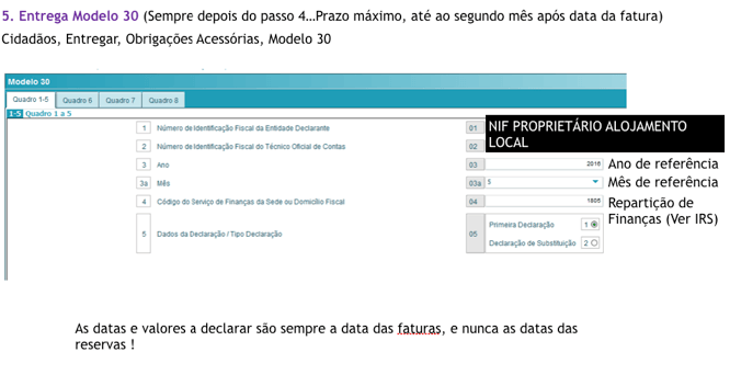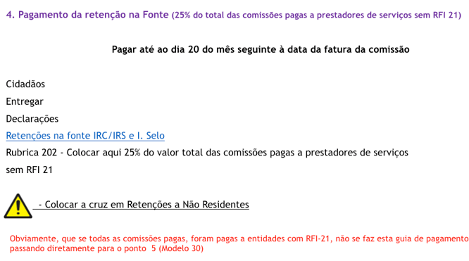 IMPORTANTE: declarar sempre no mês seguinte à data em que foi emitida a factura da comissão. Em Janeiro paga-se as facturas com a data de Dezembro.