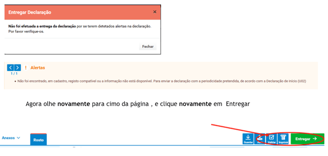 Após autenticação, a declaração vai emitir um alerta, perfeitamente normal para quem está isento de IVA: