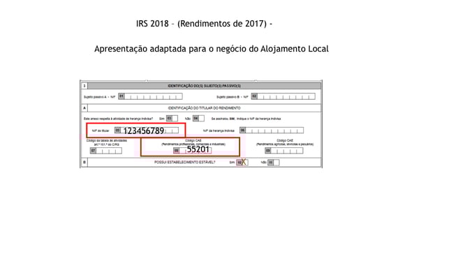 Manual foi feito a pensar no preenchimento da secção correspondente aos rendimentos auferidos em Alojamento Local, não mais do que isso.